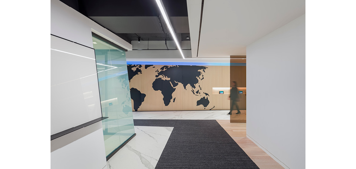 AICPA’s New York City office embodies the sophistication and innovation of an established professional organization. A custom, large-scale map displays AICPA’s global reach, while dynamic forms and volumes in the architecture signal a culture of innovation and leadership.